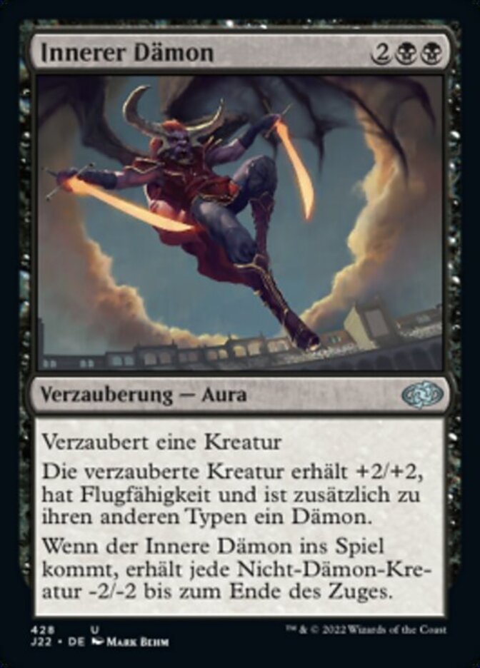 | Rules | Enchant creature Enchanted creature gets +2/+2, has flying, and is a Demon in addition to its other types. When Inner Demon enters the battlefield, all non-Demon creatures get -2/-2 until end of turn. |