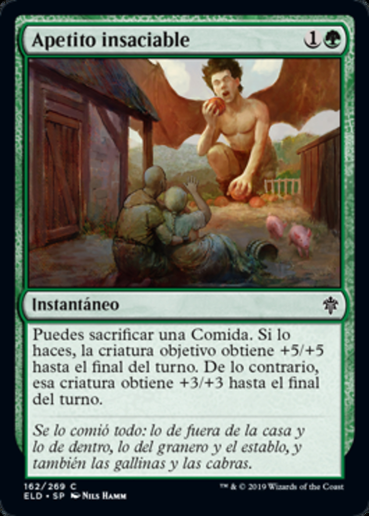 | Rules | You may sacrifice a Food. If you do, target creature gets +5/+5 until end of turn. Otherwise, that creature gets +3/+3 until end of turn. |