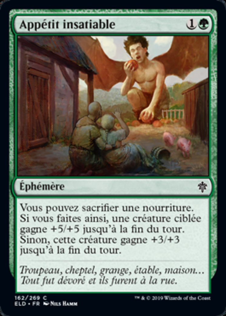 Rules You may sacrifice a Food. If you do, target creature gets +5/+5 until end of turn. Otherwise, that creature gets +3/+3 until end of turn.