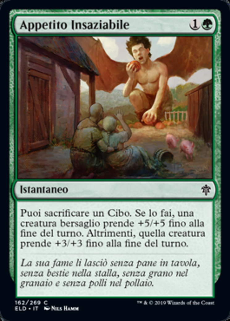 | Rules | You may sacrifice a Food. If you do, target creature gets +5/+5 until end of turn. Otherwise, that creature gets +3/+3 until end of turn. |