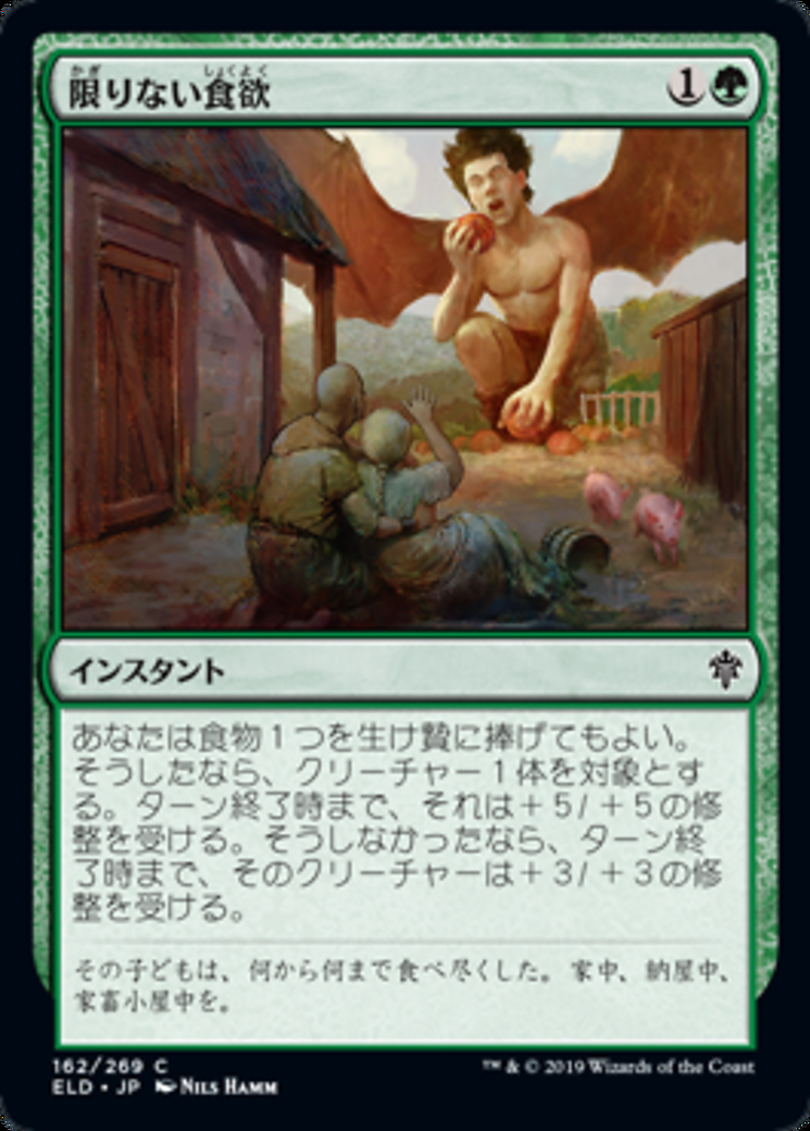 | Rules | You may sacrifice a Food. If you do, target creature gets +5/+5 until end of turn. Otherwise, that creature gets +3/+3 until end of turn. |