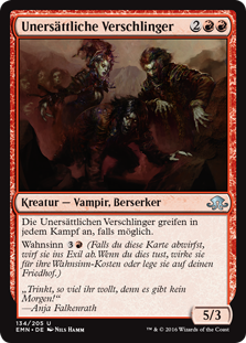 | Rules | Insatiable Gorgers attacks each combat if able. Madness (If you discard this card, discard it into exile. When you do, cast it for its madness cost or put it into your graveyard.) |