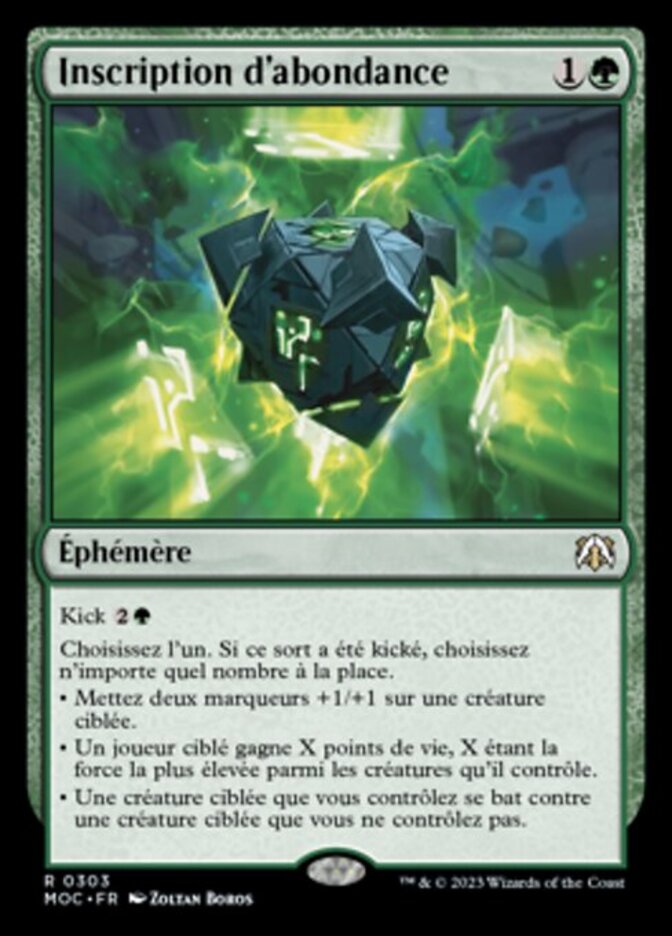 | Rules | Kicker Choose one. If this spell was kicked, choose any number instead. • Put two +1/+1 counters on target creature. • Target player gains X life, where X is the greatest power among creatures they control. • Target creature you control fights target creature you don't control. |
