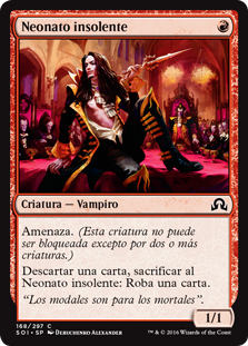 | Rules | Menace (This creature can't be blocked except by two or more creatures.) Discard a card, Sacrifice Insolent Neonate: Draw a card. |