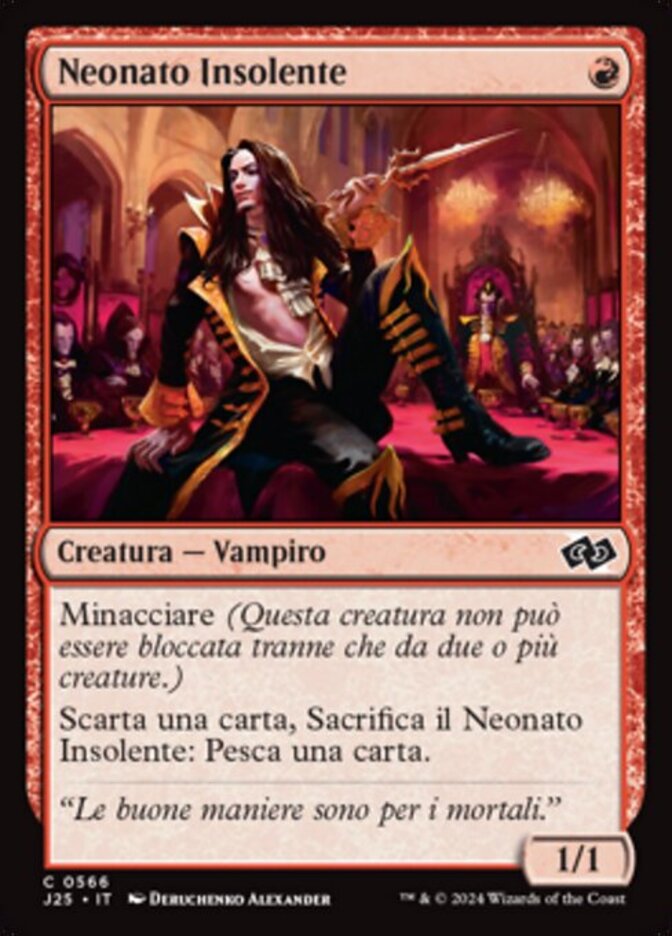 | Rules | Menace (This creature can't be blocked except by two or more creatures.) Discard a card, Sacrifice Insolent Neonate: Draw a card. |