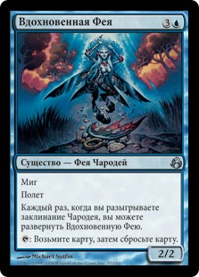 | Rules | Flash Flying Whenever you cast a Wizard spell, you may untap Inspired Sprite. : Draw a card, then discard a card. |