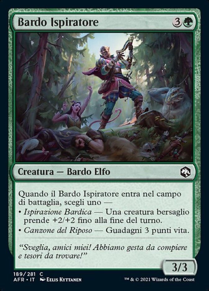 | Rules | When Inspiring Bard enters the battlefield, choose one — • Bardic Inspiration — Target creature gets +2/+2 until end of turn. • Song of Rest — You gain 3 life. |