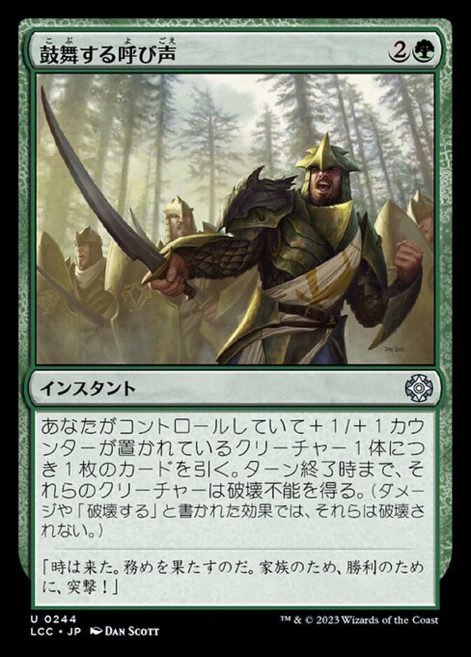 | Rules | Draw a card for each creature you control with a +1/+1 counter on it. Those creatures gain indestructible until end of turn. |
