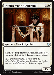 | Rules | When Inspiring Cleric enters the battlefield, you gain 4 life. |