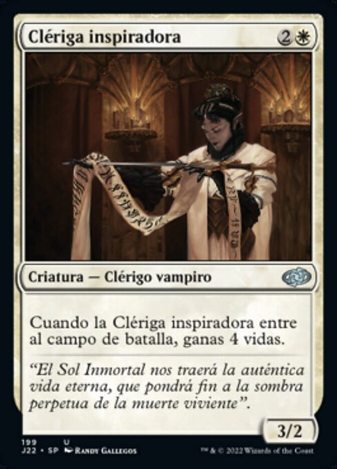 | Rules | When Inspiring Cleric enters the battlefield, you gain 4 life. |