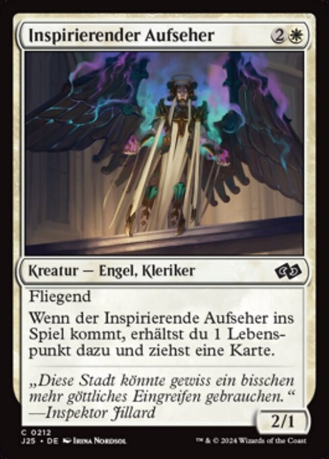 | Rules | Flying When Inspiring Overseer enters the battlefield, you gain 1 life and draw a card. |