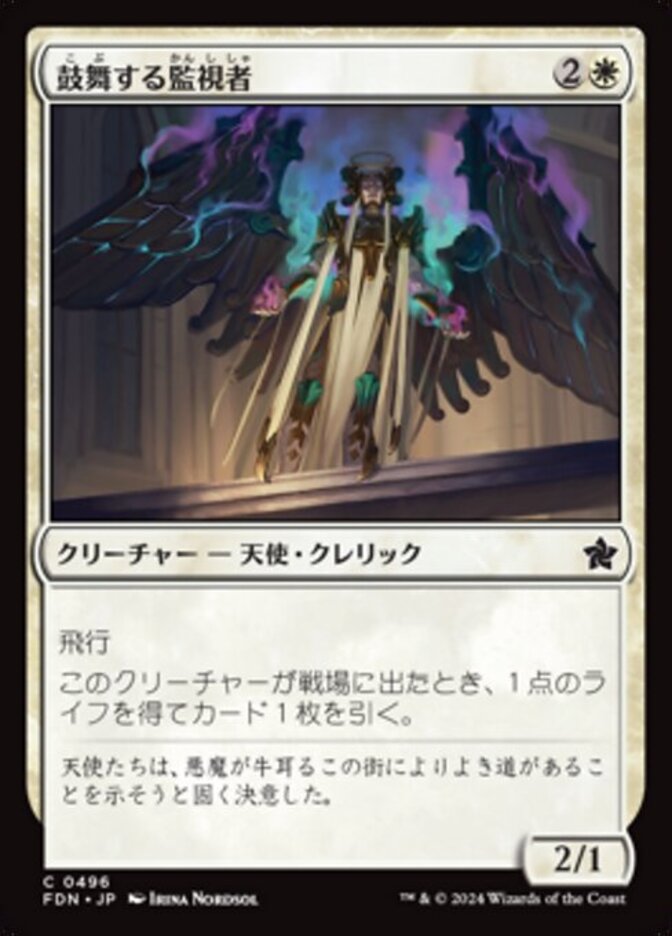 | Rules | Flying When Inspiring Overseer enters the battlefield, you gain 1 life and draw a card. |