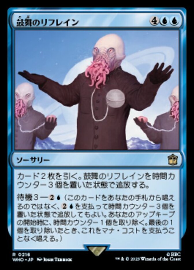 | Rules | Draw two cards. Exile Inspiring Refrain with three time counters on it. Suspend 3— (Rather than cast this card from your hand, you may pay and exile it with three time counters on it. At the beginning of your upkeep, remove a time counter. When the last is removed, cast it without paying its mana cost.) |