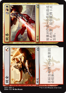 | Rules | Target creature gets +2/+2 until end of turn. // Intervention deals 3 damage to any target and you gain 3 life. |