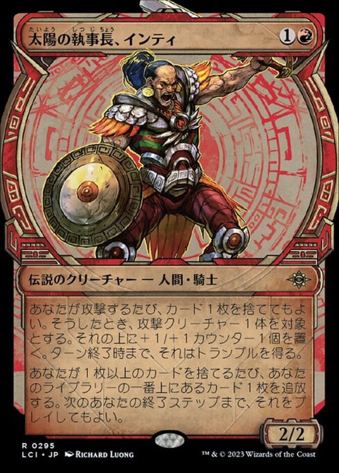| Rules | Whenever you attack, you may discard a card. When you do, put a +1/+1 counter on target attacking creature. It gains trample until end of turn. Whenever you discard one or more cards, exile the top card of your library. You may play that card until your next end step. |