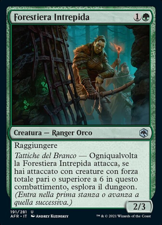 | Rules | Reach Pack tactics — Whenever Intrepid Outlander attacks, if you attacked with creatures with total power 6 or greater this combat, venture into the dungeon. (Enter the first room or advance to the next room.) |