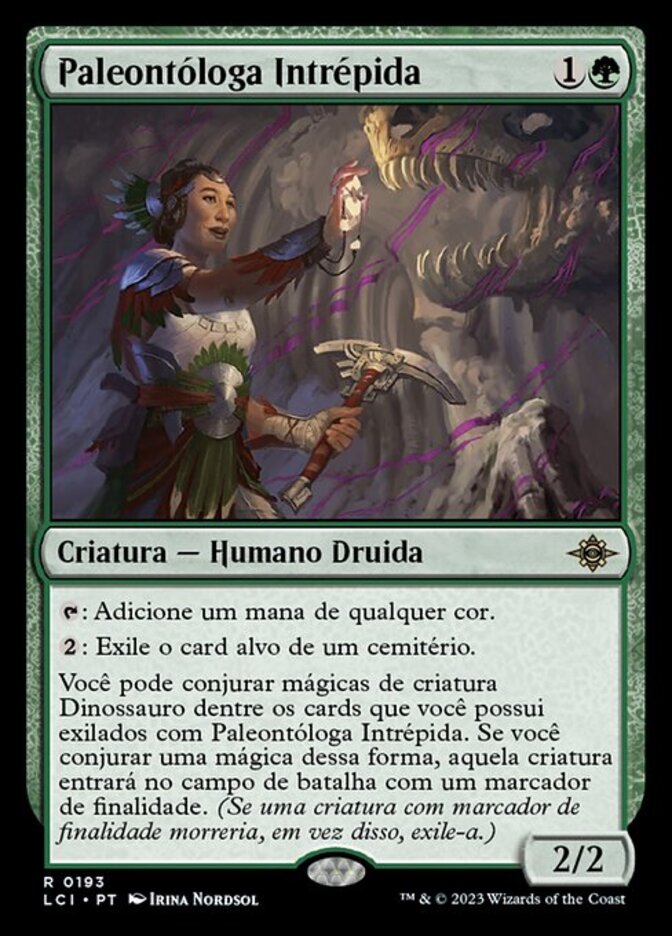| Rules | : Add one mana of any color. : Exile target card from a graveyard. You may cast Dinosaur creature spells from among cards you own exiled with Intrepid Paleontologist. If you cast a spell this way, that creature enters the battlefield with a finality counter on it. (If a creature with a finality counter on it would die, exile it instead.) |