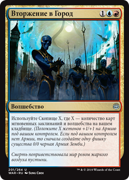 | Rules | Amass X, where X is the number of instant and sorcery cards in your graveyard. (Put X +1/+1 counters on an Army you control. If you don't control one, create a 0/0 black Zombie Army creature token first.) |