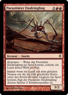 | Rules | Imprint — When Invader Parasite enters the battlefield, exile target land. Whenever a land with the same name as the exiled card enters the battlefield under an opponent's control, Invader Parasite deals 2 damage to that player. |