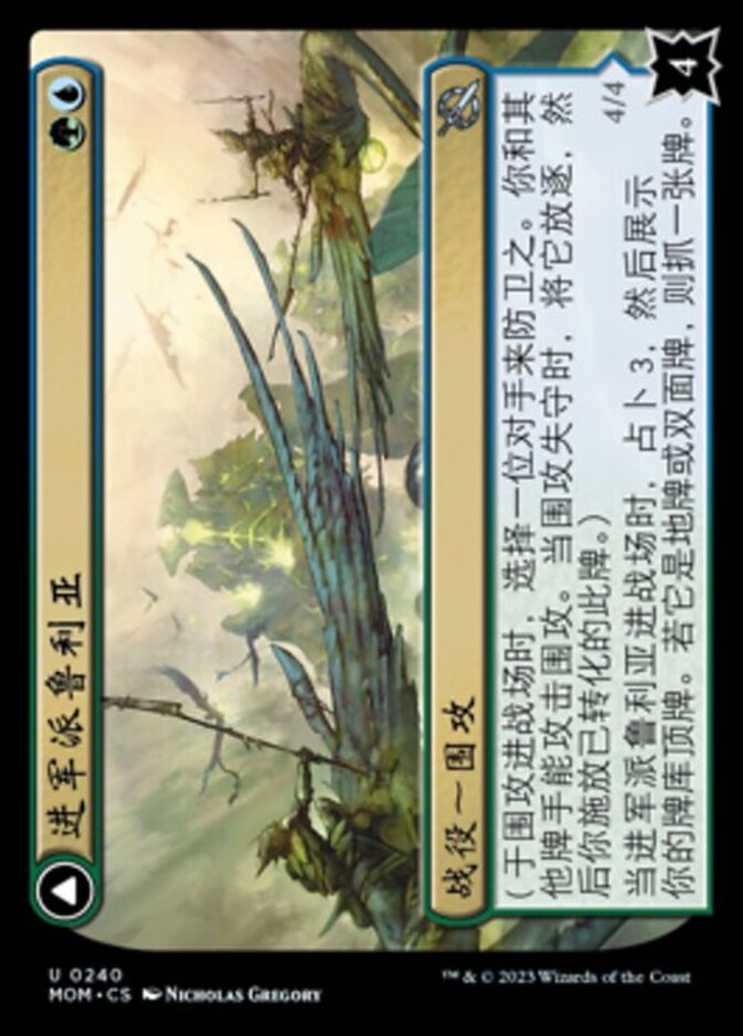 | Rules | (As a Siege enters, choose an opponent to protect it. You and others can attack it. When it's defeated, exile it, then cast it transformed.) When Invasion of Pyrulea enters the battlefield, scry 3, then reveal the top card of your library. If it's a land or double-faced card, draw a card. // Trample, ward Other transformed permanents you control have trample and ward . |