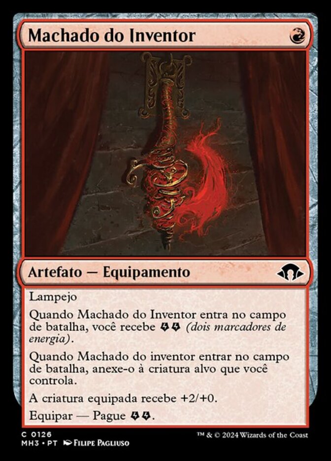 | Rules | Flash When Inventor's Axe enters the battlefield, you get (two energy counters). When Inventor's Axe enters the battlefield, attach it to target creature you control. Equipped creature gets +2/+0. Equip—Pay . |