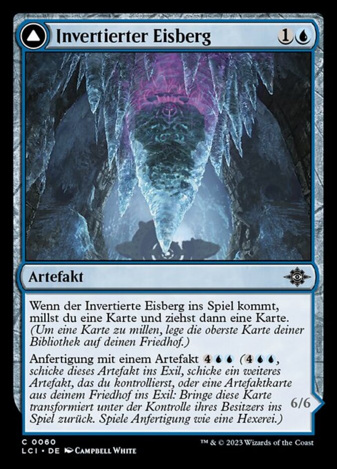 | Rules | When Inverted Iceberg enters the battlefield, mill a card, then draw a card. (To mill a card, put the top card of your library into your graveyard.) Craft with artifact (, Exile this artifact, Exile another artifact you control or an artifact card from your graveyard: Return this card transformed under its owner's control. Craft only as a sorcery.) // Whenever Iceberg Titan attacks, you may tap or untap target artifact or creature. |