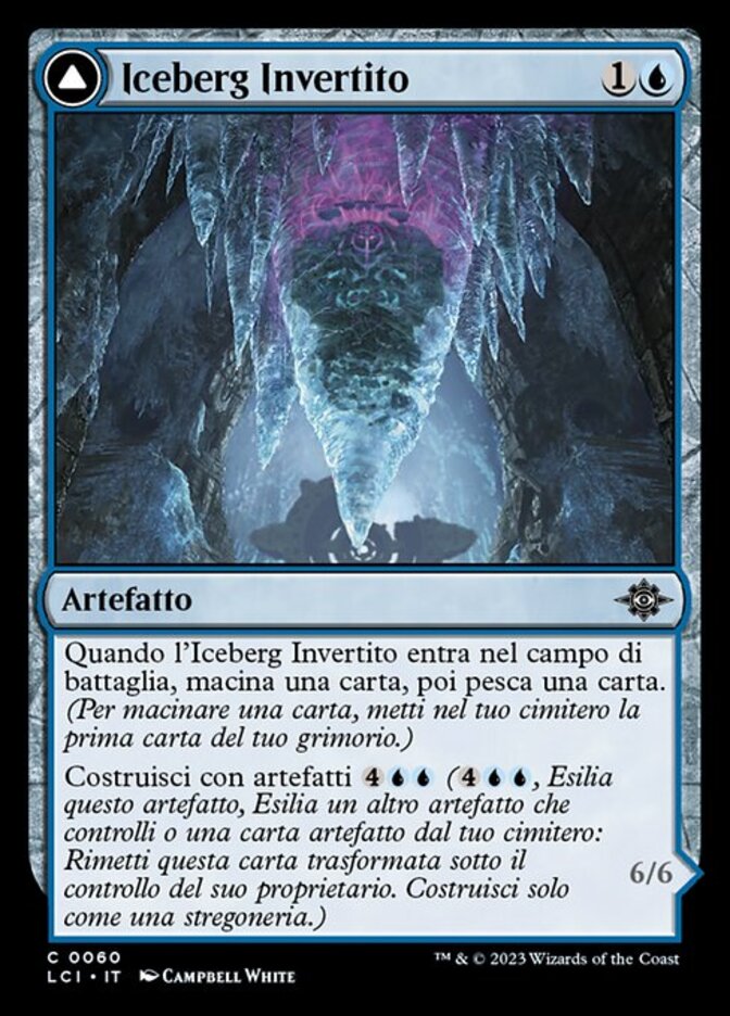 | Rules | When Inverted Iceberg enters the battlefield, mill a card, then draw a card. (To mill a card, put the top card of your library into your graveyard.) Craft with artifact (, Exile this artifact, Exile another artifact you control or an artifact card from your graveyard: Return this card transformed under its owner's control. Craft only as a sorcery.) // Whenever Iceberg Titan attacks, you may tap or untap target artifact or creature. |