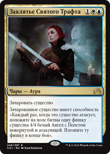 | Rules | Enchant creature Enchanted creature has "Whenever this creature attacks, create a 4/4 white Angel creature token with flying that's tapped and attacking. Exile that token at end of combat." |
