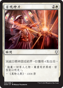 | Rules | Destroy target artifact or enchantment. You gain 4 life. |