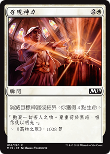 | Rules | Destroy target artifact or enchantment. You gain 4 life. |