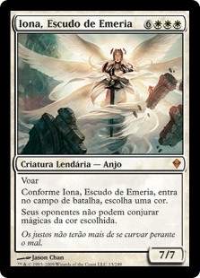 | Rules | Flying As Iona, Shield of Emeria enters the battlefield, choose a color. Your opponents can't cast spells of the chosen color. |