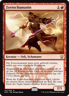 | Rules | Menace (This creature can't be blocked except by two or more creatures.) Megamorph (You may cast this card face down as a 2/2 creature for . Turn it face up any time for its megamorph cost and put a +1/+1 counter on it.) When Ire Shaman is turned face up, exile the top card of your library. Until end of turn, you may play that card. |