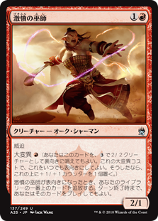 | Rules | Menace (This creature can't be blocked except by two or more creatures.) Megamorph (You may cast this card face down as a 2/2 creature for . Turn it face up any time for its megamorph cost and put a +1/+1 counter on it.) When Ire Shaman is turned face up, exile the top card of your library. Until end of turn, you may play that card. |