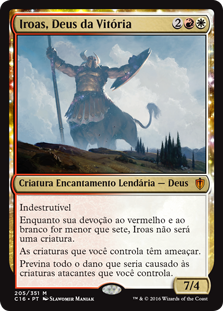 | Rules | Indestructible As long as your devotion to red and white is less than seven, Iroas isn't a creature. Creatures you control have menace. Prevent all damage that would be dealt to attacking creatures you control. |