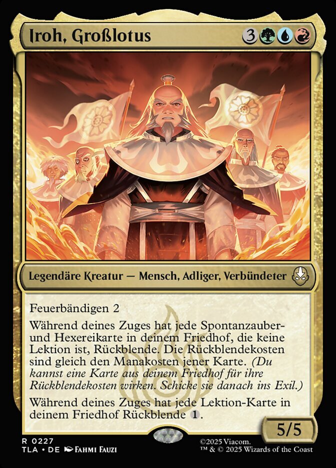 | Rules | Firebending 2 During your turn, each non-Lesson instant and sorcery card in your graveyard has flashback. The flashback cost is equal to that card's mana cost. (You may cast a card from your graveyard for its flashback cost. Then exile it.) During your turn, each Lesson card in your graveyard has flashback . |