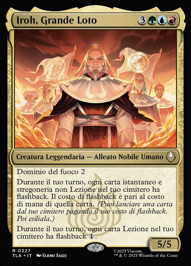 | Rules | Firebending 2 During your turn, each non-Lesson instant and sorcery card in your graveyard has flashback. The flashback cost is equal to that card's mana cost. (You may cast a card from your graveyard for its flashback cost. Then exile it.) During your turn, each Lesson card in your graveyard has flashback . |
