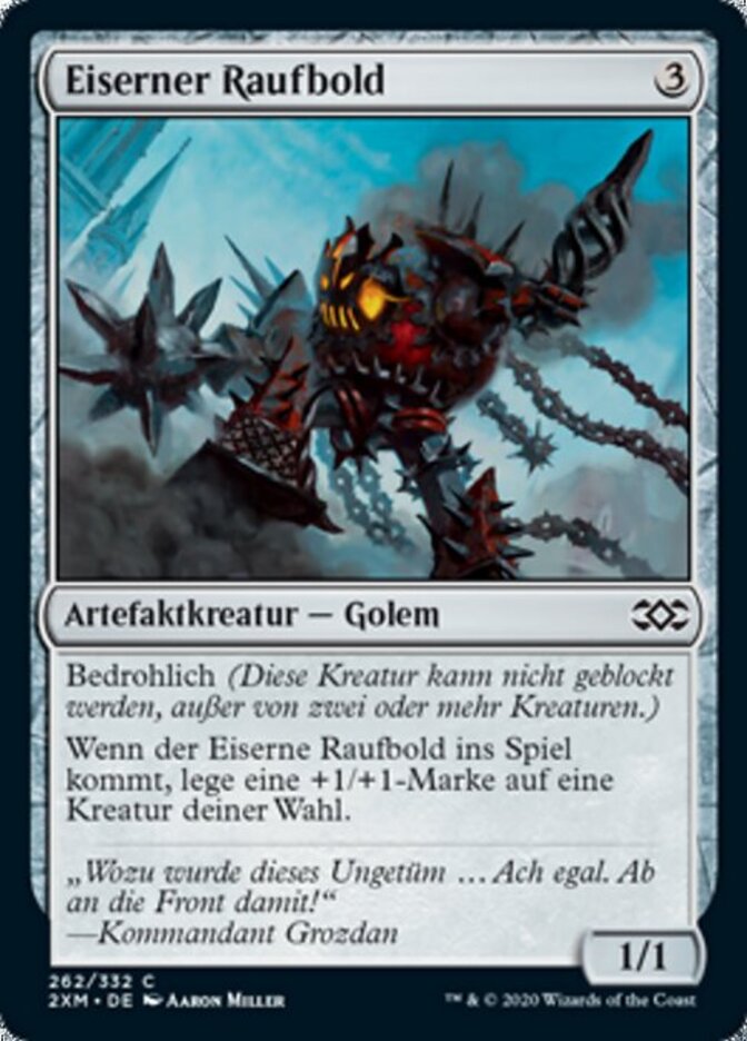 | Rules | Menace (This creature can't be blocked except by two or more creatures.) When Iron Bully enters the battlefield, put a +1/+1 counter on target creature. |