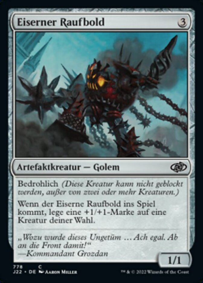 | Rules | Menace (This creature can't be blocked except by two or more creatures.) When Iron Bully enters the battlefield, put a +1/+1 counter on target creature. |