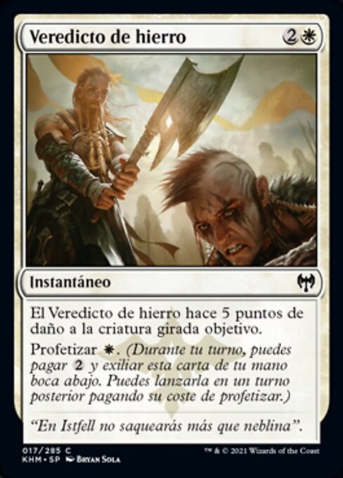 | Rules | Iron Verdict deals 5 damage to target tapped creature. Foretell (During your turn, you may pay and exile this card from your hand face down. Cast it on a later turn for its foretell cost.) |