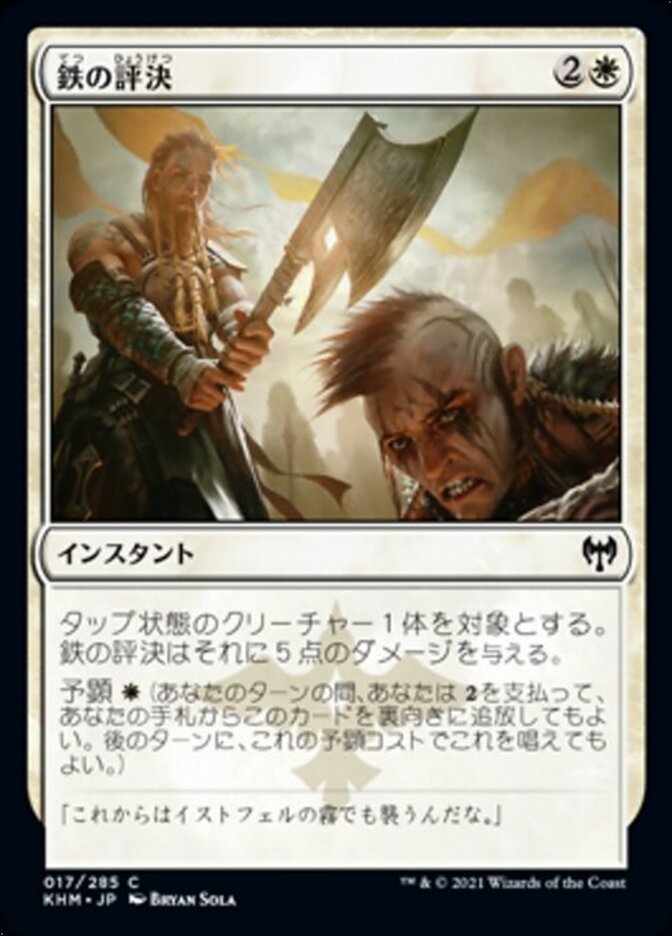 | Rules | Iron Verdict deals 5 damage to target tapped creature. Foretell (During your turn, you may pay and exile this card from your hand face down. Cast it on a later turn for its foretell cost.) |