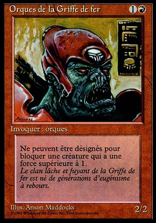 | Rules | Ironclaw Orcs can't block creatures with power 2 or greater. |