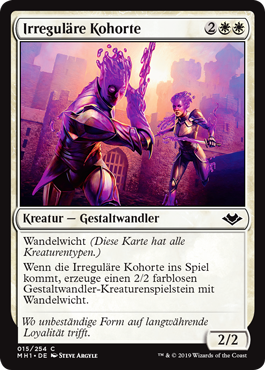 | Rules | Changeling (This card is every creature type.) When Irregular Cohort enters the battlefield, create a 2/2 colorless Shapeshifter creature token with changeling. |