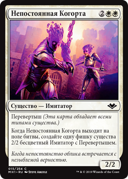 | Rules | Changeling (This card is every creature type.) When Irregular Cohort enters the battlefield, create a 2/2 colorless Shapeshifter creature token with changeling. |