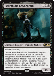 | Rules | Deathtouch Whenever Isareth the Awakener attacks, you may pay . When you do, return target creature card with mana value X from your graveyard to the battlefield with a corpse counter on it. If that creature would leave the battlefield, exile it instead of putting it anywhere else. |