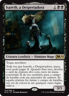 | Rules | Deathtouch Whenever Isareth the Awakener attacks, you may pay . When you do, return target creature card with mana value X from your graveyard to the battlefield with a corpse counter on it. If that creature would leave the battlefield, exile it instead of putting it anywhere else. |