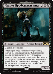 | Rules | Deathtouch Whenever Isareth the Awakener attacks, you may pay . When you do, return target creature card with mana value X from your graveyard to the battlefield with a corpse counter on it. If that creature would leave the battlefield, exile it instead of putting it anywhere else. |