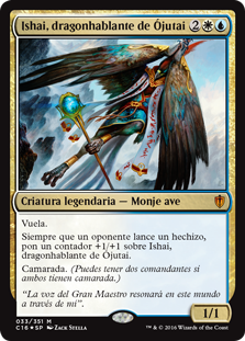 | Rules | Flying Whenever an opponent casts a spell, put a +1/+1 counter on Ishai, Ojutai Dragonspeaker. Partner (You can have two commanders if both have partner.) |