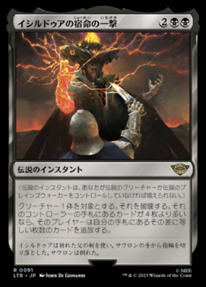 | Flavor | Isildur cut the Ring from Sauron's hand with the hilt-shard of his father's sword, and Sauron himself was overthrown. |