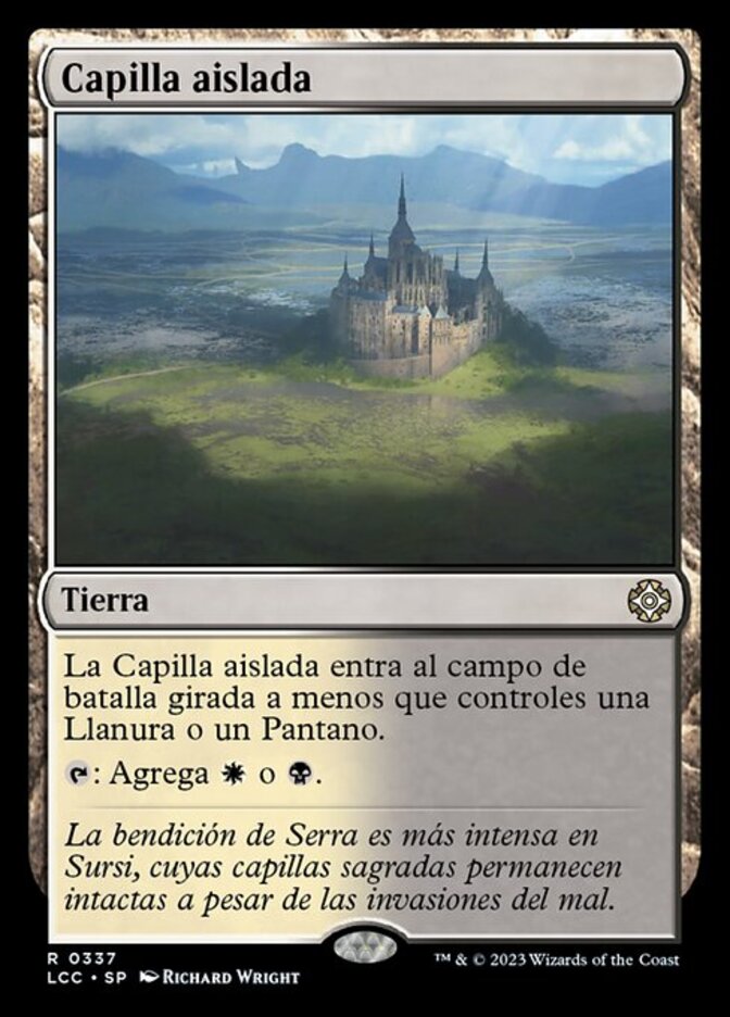 | Rules | Isolated Chapel enters the battlefield tapped unless you control a Plains or a Swamp. : Add or . |