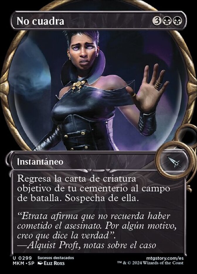 | Rules | Return target creature card from your graveyard to the battlefield. Suspect it. (It has menace and can't block.) |